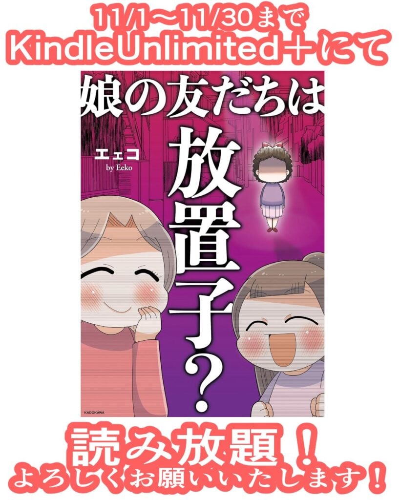 11月いっぱいKindleUnlimited+にて「娘の友だちは放置子?」が読み放題になりました!