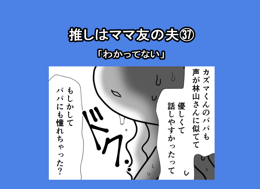 推しはママ友の夫㊲「わかってない」 2026.03.27 推しはママ友の夫 コミックエッセイ, 体験談 前回 推しはママ友の夫㊱「不審」 本編 広告 広告 あとがき つづき 24 コメントはこちら 同じカテゴリの記事 推しはママ友の夫㊲「わかってない」 推しはママ友の夫㊱「不審」 推しはママ友の夫㉟「話し合い」 推しはママ友の夫㉞「企む」 推しはママ友の夫㉝「拒絶」 推しはママ友の夫㉜「私ならわかってあげられる」 推しはママ友の夫㉛「一緒に帰ってあげる」 推しはママ友の夫㉚「激怒」 推しはママ友の夫㉙「我が子を優先しなさい」 推しはママ友の夫㉘「拒否」 推しはママ友の夫㉗「パパの代わりにきた人物」 推しはママ友の夫㉖「同じになってほしい」 推しはママ友の夫㉕「キレる」 推しはママ友の夫㉔「実子のおねだりに…」 推しはママ友の夫㉓「ユミさんより私のほうが」 推しはママ友の夫㉒「推しを待受にするのは当然」 推しはママ友の夫㉑「推しの好みに合わせるのは当然」 推しはママ友の夫⑳「推しのためにイメチェン」 推しはママ友の夫⑲「どうしたら喜んでもらえる?」 推しはママ友の夫⑱「私だから話してくれた」 推しはママ友の夫⑰「推しの想いを聞いて…」 推しはママ友の夫⑯「ユミさんになりたい」 推しはママ友の夫⑮「絶対にダメ!!」 推しはママ友の夫⑭「水をさされて…」 推しはママ友の夫⑬「羨ましい」 推しはママ友の夫⑫「推しとして!好き」 推しはママ友の夫⑪「すき」 推しはママ友の夫⑩「陽キャにヲタクがバレる!!」 推しはママ友の夫⑨「嫉妬しないの?」 推しはママ友の夫⑧「推しとの出会い⑥」 推しはママ友の夫⑦「推しとの出会い⑤」 推しはママ友の夫⑥「推しとの出会い④」 推しはママ友の夫⑤「推しとの出会い③」 推しはママ友の夫④「推しとの出会い②」 推しはママ友の夫③「推しとの出会い①」 推しはママ友の夫②「週1で会える推し」 推しはママ友の夫①「これは不倫や浮気じゃない」 前の記事 50代「そろそろ閉経か…」油断していたら突然の出血!私を救った同年代の女性の振る舞い 2026.03.26 次の記事 記事がありません アプリなら通知ですぐ読める! NAPBIZブログ This site is protected by reCAPTCHA and the Google Privacy Policy and Terms of Service apply.