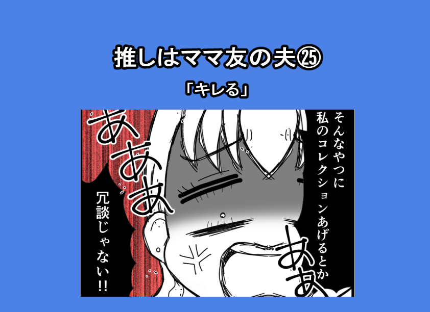 推しはママ友の夫㉕「キレる」 2026.02.27 推しはママ友の夫 コミックエッセイ, 体験談 前回 推しはママ友の夫㉔「実子のおねだりに…」 本編 広告 広告 あとがき つづき 24 コメントはこちら 同じカテゴリの記事 推しはママ友の夫㉖「同じになってほしい」 推しはママ友の夫㉕「キレる」 推しはママ友の夫㉔「実子のおねだりに…」 推しはママ友の夫㉓「ユミさんより私のほうが」 推しはママ友の夫㉒「推しを待受にするのは当然」 推しはママ友の夫㉑「推しの好みに合わせるのは当然」 推しはママ友の夫⑳「推しのためにイメチェン」 推しはママ友の夫⑲「どうしたら喜んでもらえる?」 推しはママ友の夫⑱「私だから話してくれた」 推しはママ友の夫⑰「推しの想いを聞いて…」 推しはママ友の夫⑯「ユミさんになりたい」 推しはママ友の夫⑮「絶対にダメ!!」 推しはママ友の夫⑭「水をさされて…」 推しはママ友の夫⑬「羨ましい」 推しはママ友の夫⑫「推しとして!好き」 推しはママ友の夫⑪「すき」 推しはママ友の夫⑩「陽キャにヲタクがバレる!!」 推しはママ友の夫⑨「嫉妬しないの?」 推しはママ友の夫⑧「推しとの出会い⑥」 推しはママ友の夫⑦「推しとの出会い⑤」 推しはママ友の夫⑥「推しとの出会い④」 推しはママ友の夫⑤「推しとの出会い③」 推しはママ友の夫④「推しとの出会い②」 推しはママ友の夫③「推しとの出会い①」 推しはママ友の夫②「週1で会える推し」 推しはママ友の夫①「これは不倫や浮気じゃない」 前の記事 推しはママ友の夫㉔「実子のおねだりに…」 2026.02.25 次の記事 推しはママ友の夫㉖「同じになってほしい」 2026.02.28 アプリなら通知ですぐ読める! NAPBIZブログ This site is protected by reCAPTCHA and the Google Privacy Policy and Terms of Service apply.