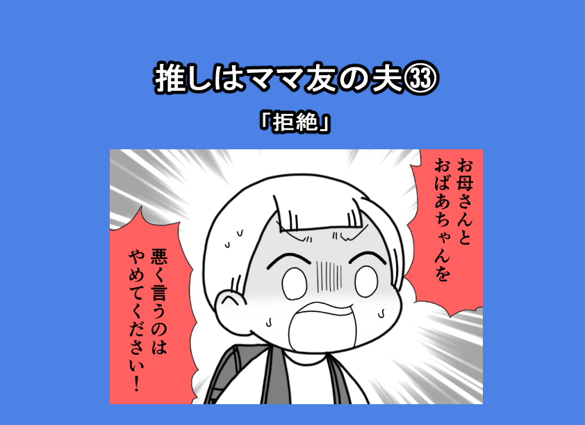 推しはママ友の夫㉝「拒絶」 2026.03.21 推しはママ友の夫 コミックエッセイ, 体験談 前回 推しはママ友の夫㉜「私ならわかってあげられる」 本編 広告 広告 あとがき つづき 7 コメントはこちら 同じカテゴリの記事 推しはママ友の夫㉝「拒絶」 推しはママ友の夫㉜「私ならわかってあげられる」 推しはママ友の夫㉛「一緒に帰ってあげる」 推しはママ友の夫㉚「激怒」 推しはママ友の夫㉙「我が子を優先しなさい」 推しはママ友の夫㉘「拒否」 推しはママ友の夫㉗「パパの代わりにきた人物」 推しはママ友の夫㉖「同じになってほしい」 推しはママ友の夫㉕「キレる」 推しはママ友の夫㉔「実子のおねだりに…」 推しはママ友の夫㉓「ユミさんより私のほうが」 推しはママ友の夫㉒「推しを待受にするのは当然」 推しはママ友の夫㉑「推しの好みに合わせるのは当然」 推しはママ友の夫⑳「推しのためにイメチェン」 推しはママ友の夫⑲「どうしたら喜んでもらえる?」 推しはママ友の夫⑱「私だから話してくれた」 推しはママ友の夫⑰「推しの想いを聞いて…」 推しはママ友の夫⑯「ユミさんになりたい」 推しはママ友の夫⑮「絶対にダメ!!」 推しはママ友の夫⑭「水をさされて…」 推しはママ友の夫⑬「羨ましい」 推しはママ友の夫⑫「推しとして!好き」 推しはママ友の夫⑪「すき」 推しはママ友の夫⑩「陽キャにヲタクがバレる!!」 推しはママ友の夫⑨「嫉妬しないの?」 推しはママ友の夫⑧「推しとの出会い⑥」 推しはママ友の夫⑦「推しとの出会い⑤」 推しはママ友の夫⑥「推しとの出会い④」 推しはママ友の夫⑤「推しとの出会い③」 推しはママ友の夫④「推しとの出会い②」 推しはママ友の夫③「推しとの出会い①」 推しはママ友の夫②「週1で会える推し」 推しはママ友の夫①「これは不倫や浮気じゃない」 前の記事 「察してよ…」育児の限界で夫が放った言葉に絶望。溝を埋めるために私が選んだ道(ウーマンカレンダー体験談) 2026.03.20 次の記事 記事がありません アプリなら通知ですぐ読める! NAPBIZブログ This site is protected by reCAPTCHA and the Google Privacy Policy and Terms of Service apply.