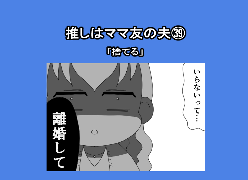 推しはママ友の夫㊴「捨てる」 2026.03.30 推しはママ友の夫 コミックエッセイ, 体験談 前回 推しはママ友の夫㊳「あの人以外全部邪魔」 本編 広告 広告 あとがき つづき 10 コメントはこちら 同じカテゴリの記事 推しはママ友の夫㊴「捨てる」 推しはママ友の夫㊳「あの人以外全部邪魔」 推しはママ友の夫㊲「わかってない」 推しはママ友の夫㊱「不審」 推しはママ友の夫㉟「話し合い」 推しはママ友の夫㉞「企む」 推しはママ友の夫㉝「拒絶」 推しはママ友の夫㉜「私ならわかってあげられる」 推しはママ友の夫㉛「一緒に帰ってあげる」 推しはママ友の夫㉚「激怒」 推しはママ友の夫㉙「我が子を優先しなさい」 推しはママ友の夫㉘「拒否」 推しはママ友の夫㉗「パパの代わりにきた人物」 推しはママ友の夫㉖「同じになってほしい」 推しはママ友の夫㉕「キレる」 推しはママ友の夫㉔「実子のおねだりに…」 推しはママ友の夫㉓「ユミさんより私のほうが」 推しはママ友の夫㉒「推しを待受にするのは当然」 推しはママ友の夫㉑「推しの好みに合わせるのは当然」 推しはママ友の夫⑳「推しのためにイメチェン」 推しはママ友の夫⑲「どうしたら喜んでもらえる?」 推しはママ友の夫⑱「私だから話してくれた」 推しはママ友の夫⑰「推しの想いを聞いて…」 推しはママ友の夫⑯「ユミさんになりたい」 推しはママ友の夫⑮「絶対にダメ!!」 推しはママ友の夫⑭「水をさされて…」 推しはママ友の夫⑬「羨ましい」 推しはママ友の夫⑫「推しとして!好き」 推しはママ友の夫⑪「すき」 推しはママ友の夫⑩「陽キャにヲタクがバレる!!」 推しはママ友の夫⑨「嫉妬しないの?」 推しはママ友の夫⑧「推しとの出会い⑥」 推しはママ友の夫⑦「推しとの出会い⑤」 推しはママ友の夫⑥「推しとの出会い④」 推しはママ友の夫⑤「推しとの出会い③」 推しはママ友の夫④「推しとの出会い②」 推しはママ友の夫③「推しとの出会い①」 推しはママ友の夫②「週1で会える推し」 推しはママ友の夫①「これは不倫や浮気じゃない」 前の記事 推しはママ友の夫㊳「あの人以外全部邪魔」 2026.03.28 次の記事 記事がありません アプリなら通知ですぐ読める! NAPBIZブログ This site is protected by reCAPTCHA and the Google Privacy Policy and Terms of Service apply.